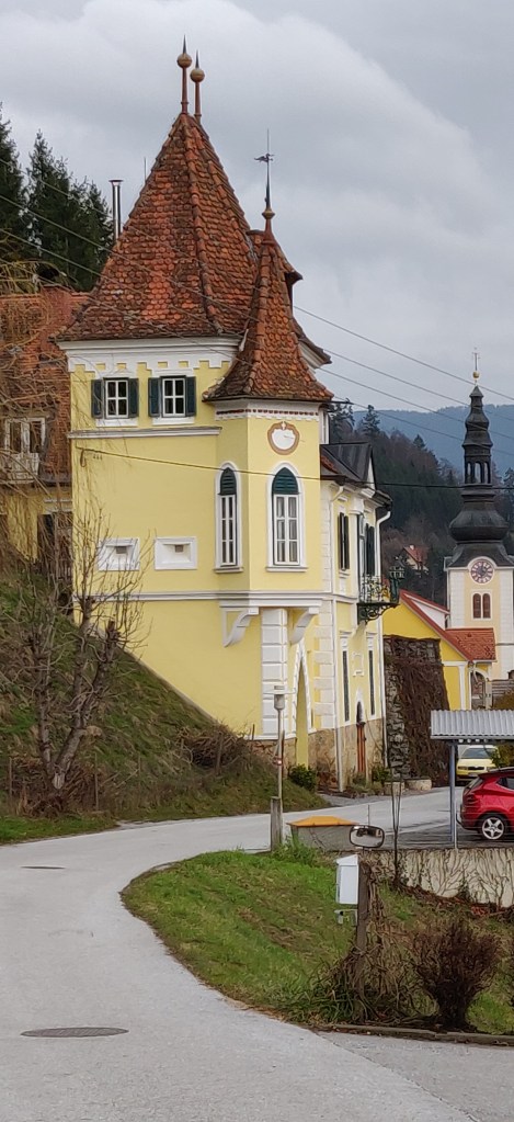 Zuvor hatten wir eine kleine Autorunde um den Passailer Marktplatz gedreht und waren beim Reisinger vorbei einer kleinen Tafel nachgefahren, die die St. Anna Kirche anpries. Auf der Jagd nach dieser Kapelle machten wir einen Halt bei einem gelben schlösschenartigen Haus, das wir natürlich gleich mit der St. Anna Kirche in Verbindung brachten. Naja, es war ein im Jahre 1848 errichtetes Kellerhaus gewesen, das tolle Verzierungen aufwies und von uns fleißig fotografiert wurde.