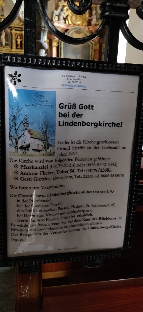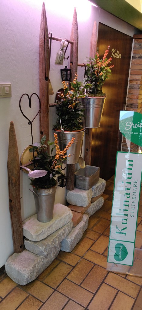Unter Kulinarischem fand ich recht schnell die Lindenberg Stub`n (http://www.lindenbergstubn.at/) mit Weinkeller. Mir war dieses Restaurant aufgefallen, weil ich etwas mit Weitblick suchte. Es sollte ein Restaurant sein, dass mir einen guten Überblick über Passail gab, nämlich nicht nur kulinarisch, sondern auch von oben, also einen Fernblick bot. Ich, als visueller Typ, verschaffe mir gerne den Überblick, in dem ich auf den höchsten oder einen hohen Berg gehe, um mich zu orientieren. Dieses Restaurant schien mir eine perfekte Lage zu haben, um genau dies für mich zu finden: einen Ansatzpunkt, wie Passail denn von oben aussah. Von dort konnte ich mich dann sozusagen nach unten vorarbeiten. Gesagt getan! Ich rief an, um zu erfahren, dass genau an diesem Tag eine Geburtstagsfeier den Platz okkupierte, den ich ja für mich und meine BegleiterInnen organisieren wollte. Schade. Die Dame am Telefon, es mag die Chefin gewesen sein, offerierte mir, den Weinkeller einzuheizen und uns Gebackenes zu servieren. Das empfand ich als sehr liebe Geste, denn trotz der Geburtstagsfeier wollte sie uns die Möglichkeit eröffnen, doch noch einen beheizten Raum und leckeres Essen am ersten Advent in der Lindenberg Stub’n zu ergattern. Ich wollte schon zusagen, da dachte ich an meine Idee, am Fenster zu sitzen und auf Passail zu blicken. Und diese Idee gefiel mir besser. Ich wollte an einem anderen Tag wiederkommen und diese einmalige Sicht beim Essen genießen. Also war meine Entscheidung getroffen, „zu euch komme ich gerne ein andermal“. Damit war die Chefin aus der Leitung und ich im Internet.