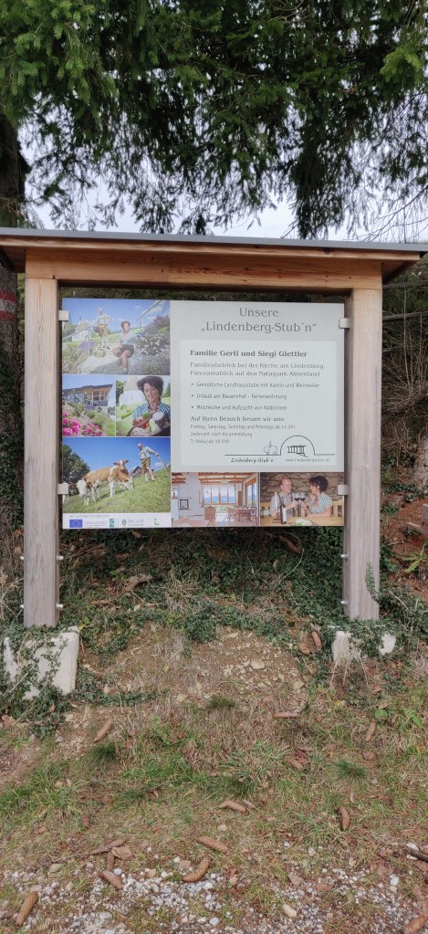 Erst nach Verlassen der Kirche fiel mir das Restaurant auf derselben Anhöhe auf und dann ging mir ein Licht auf: Dies musste die Lindenberg Stub´n sein. Natürlich! Ja, von hier aus hat man tatsächlich einen super Weitblick, sogar bei so einem kalten Wintertag wie heute. Tja, ein andermal werden wir die Küche dort testen. Ich freue mich drauf. Dass dieses Restaurant direkt neben der Sankt Anna Kirche am Lindenberg liegen musste, war klar. Aber dass wir nun beides kannten, hatten wir dem Schild am Marktplatz zu verdanken. Ist es nicht immer lustiger, etwas spontan selbst zu entdecken, auch wenn es durch ein Schild und Google-Maps schon fast vor unsere Nasen getragen wurde?