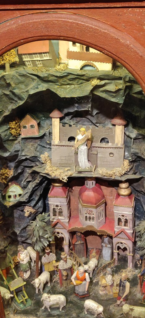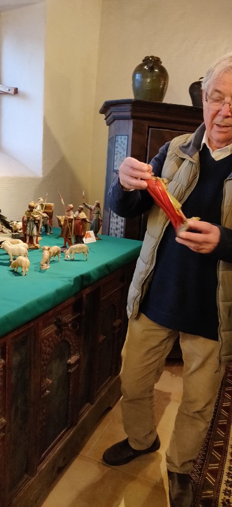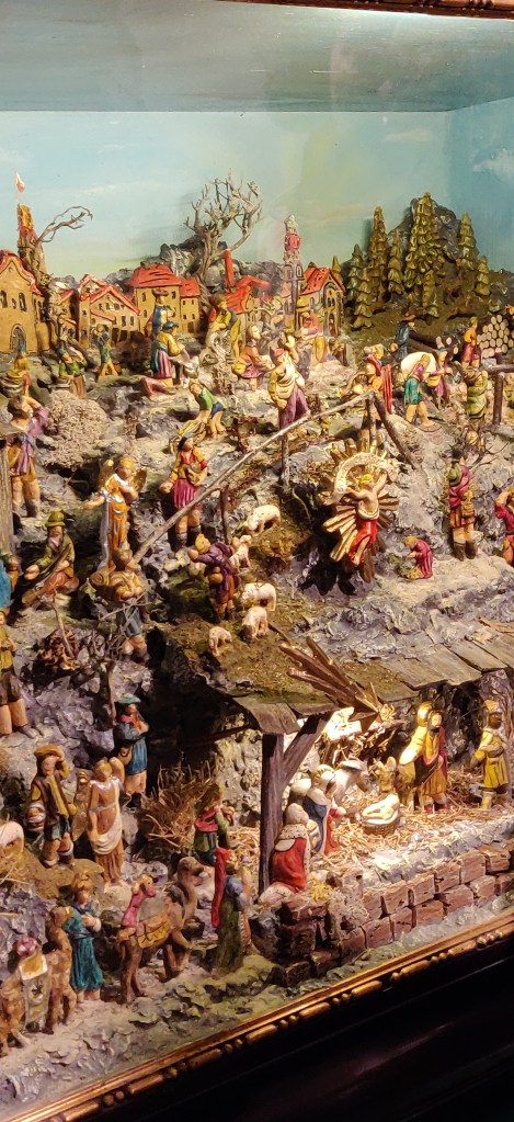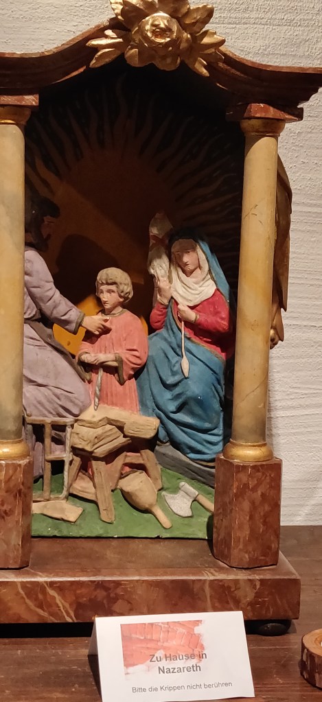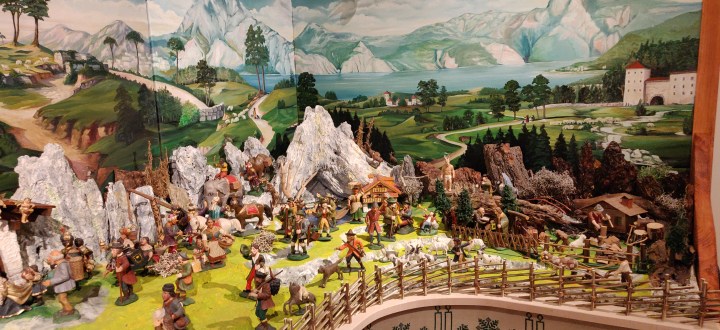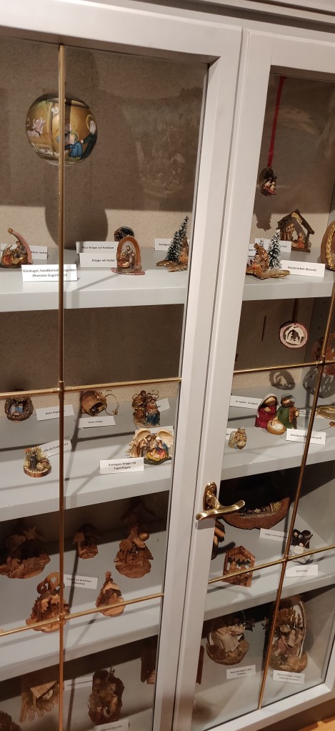 Eine tolle Führung von Herrn MR Dr. Bernd Mayer brachte uns die einzelnen Geschichten hinter den Krippen näher. Seine Begeisterung für Krippen und sein profundes Wissen steckten regelrecht an, sodass wir den Erläuterungen gespannt zulauschten und überrascht nach Ende der Führung feststellten, dass sie mehr als 1 Stunde gedauert hatte. Ich fragte mich danach, wieso ich bei Ausstellungen oft auf Führungen verzichte? Das sind doch wesentliche Informationen, die ich so nie herausgefunden hätte! Ich beschloss, bei den nächsten Museen oder Ausstellungen in eine Audioführung oder noch besser, in eine persönliche Führung zu investieren.