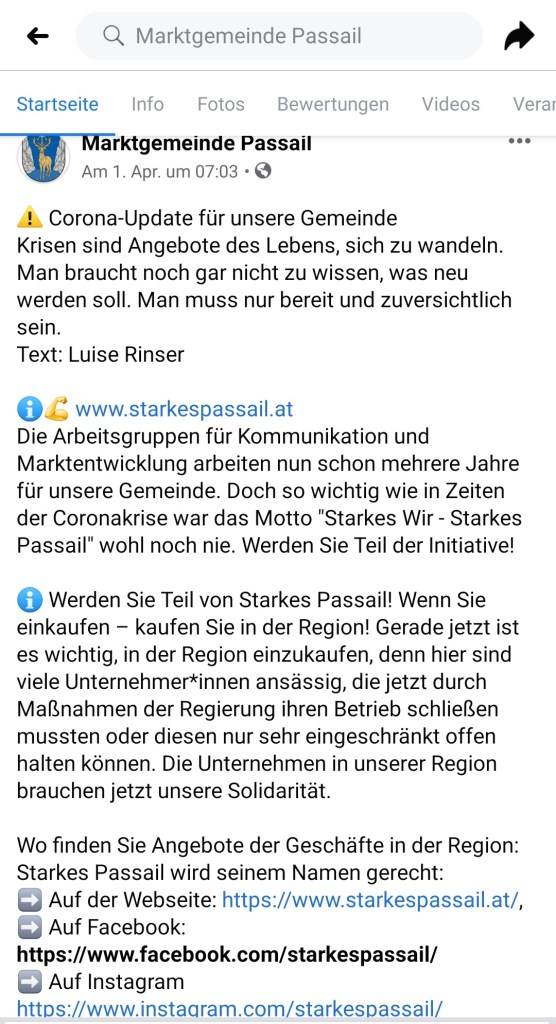 Corona hält uns weiterhin in Atem. Passail hält zusammen und gerade in dieser bewegten Zeit unterstützt man sich dort gegenseitig. Ein echt starkes Passail! Und hier ein paar Ausschnitte daraus: