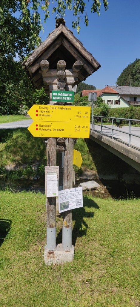 Wir schreiben Ende Juni 2020. Das Wetter verspricht heute bis späten Nachmittag sonnig und heiß zu werden. Da ist die Entscheidung eine leichte, und zwar eine Wandertour in der Raabklamm mit Abkühlung in der erfrischenden Raab zu unternehmen.